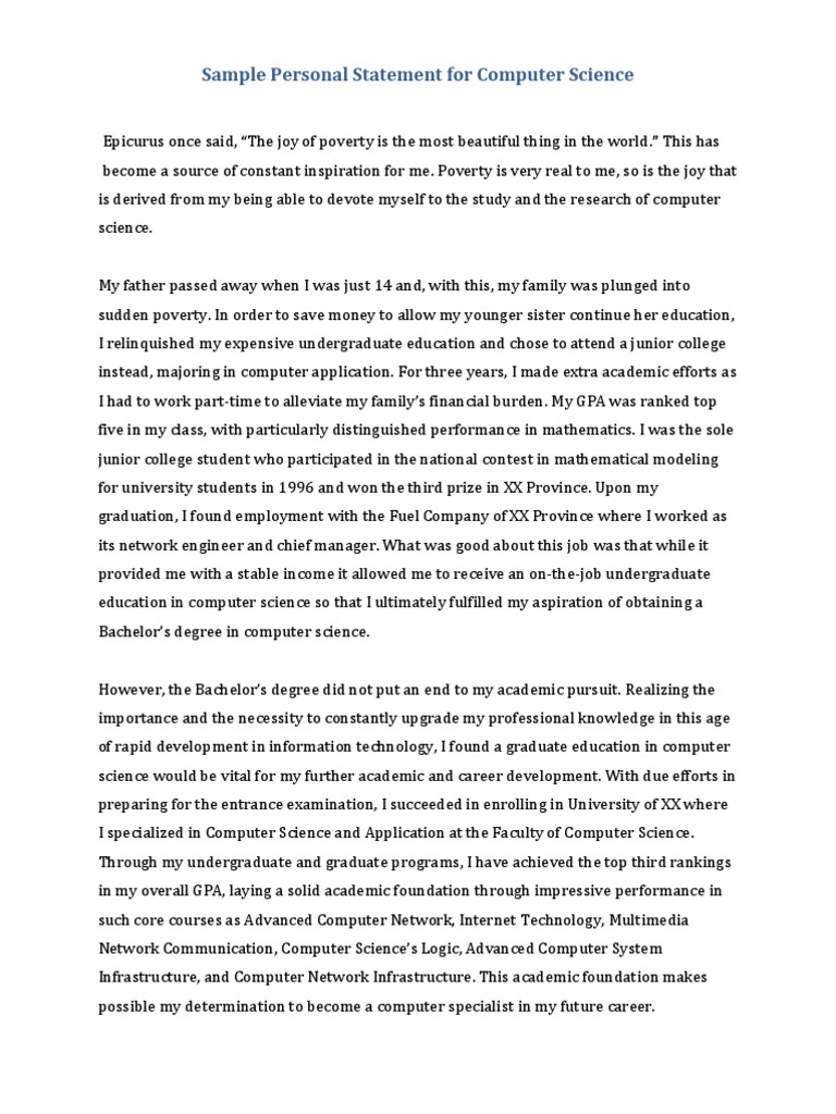 Personal statement is a piece of individual writing a person usually encloses to his or her university application. It's never too late to study, universities accept not only young and enthusiastic people but representatives of all ages. Anyway, we think it's vital to know how to write a personal statement There isn’t a clearly defined personal statement template for you to use as each person’s statement is different. When it comes to writing a personal statement for universities, your personal statement should touch on your passions, your interest in the course, why you’re applying for the course and why you would be an asset to the university you're applying to Business and IT Personal Statement Example 1 Ever since I was young I have always been interested in businesses and how they operate, as well as being fascinated by other languages and cultural differences. My passion for the subject expanded when I chose business studies and french, as part of my A-level education